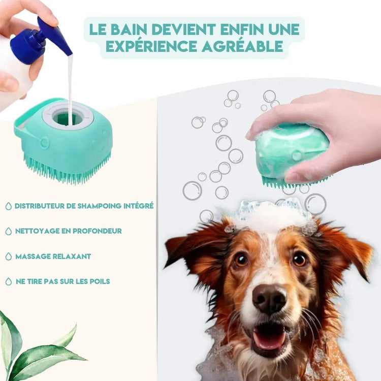 Cette brosse de douche pour chien laisse la peau de votre animal propre et aide à restaurer l'éclat naturel de son pelage.