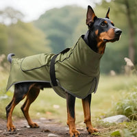 Ce manteau imperméable accompagne votre Dobermann à chaque sortie : footing, balade en forêt ou trajet rapide.